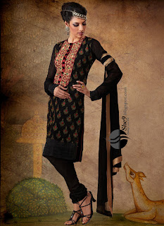 Mughal Cultural Salwar kameez with nice and beautiful neck design and beautiful black Churidar pajama style salwar.
